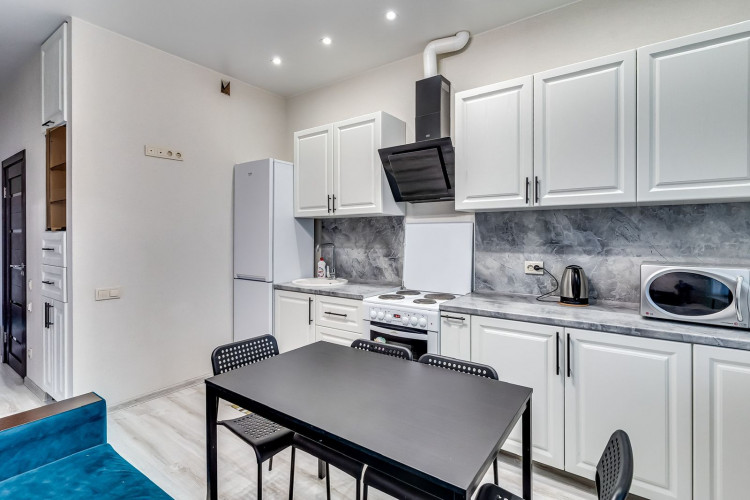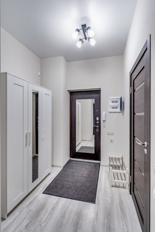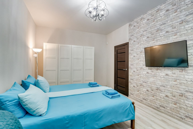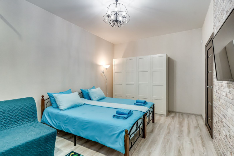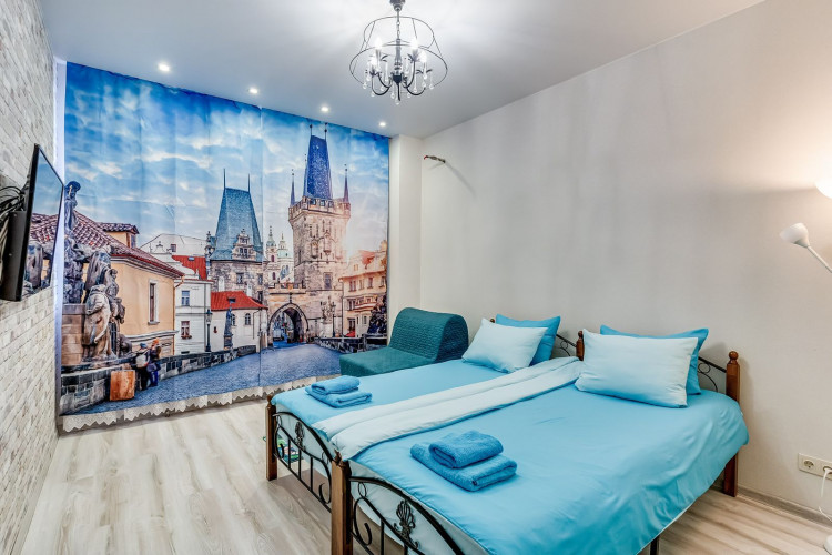 Апартамент "Прага" выполнен в светлых тонах и имеет лаконичный минималистический дизайн. Он отлично зарекомендовал себя для проживания, как на сутки так и долгосрочно. В апартаменте имеется 4 спальных места рассчитанных на максимальную загрузку семьи 5 человек, либо 3-4 самостоятельных путешественника. Имеется три односпальных кровати и двуспальный раскладной диван.