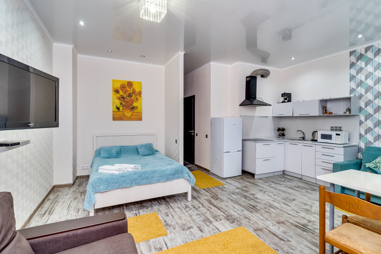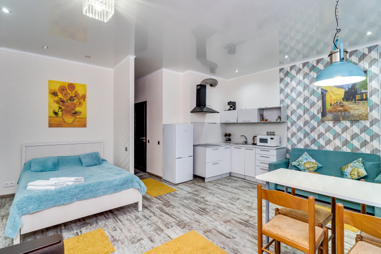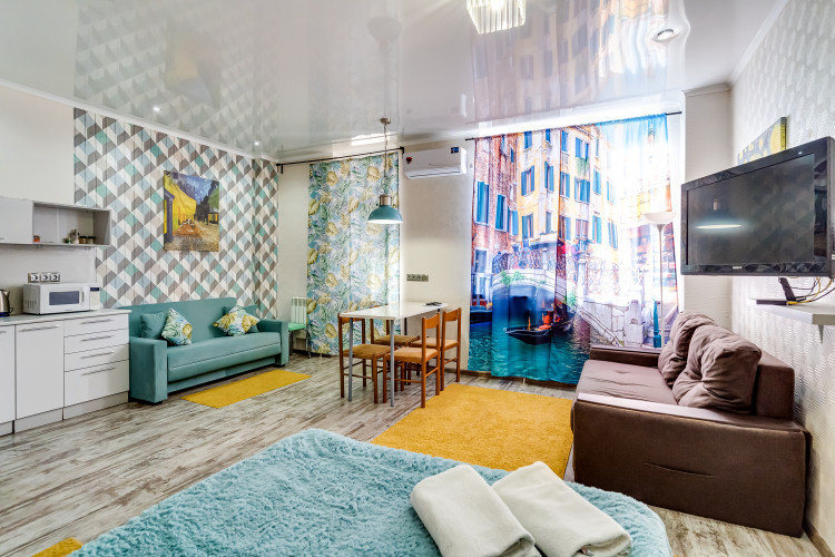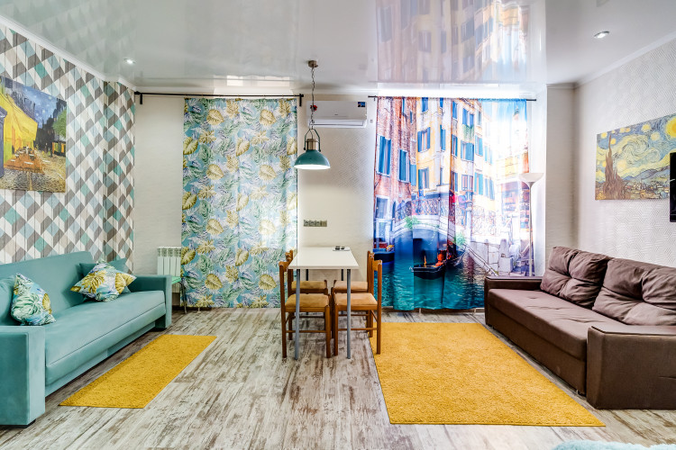 Новый просторный апартамент "Ван Гог" отлично зарекомендовал себя для проживания, как на сутки так и долгосрочно. В апартаменте имеется 3 спальных места рассчитанных на максимальную загрузку семьи 5-6 человек, либо три самостоятельных путешественника.